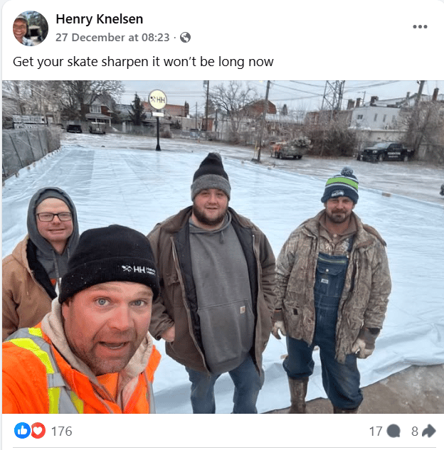 Every winter, Henry turns his downtown Simcoe lot into a public skating rink so people have a place to gather, skate, and enjoy the season. It’s become a bit of a local tradition. He just posted this photo, which means this year’s rink is almost ready — sharpen your skates!