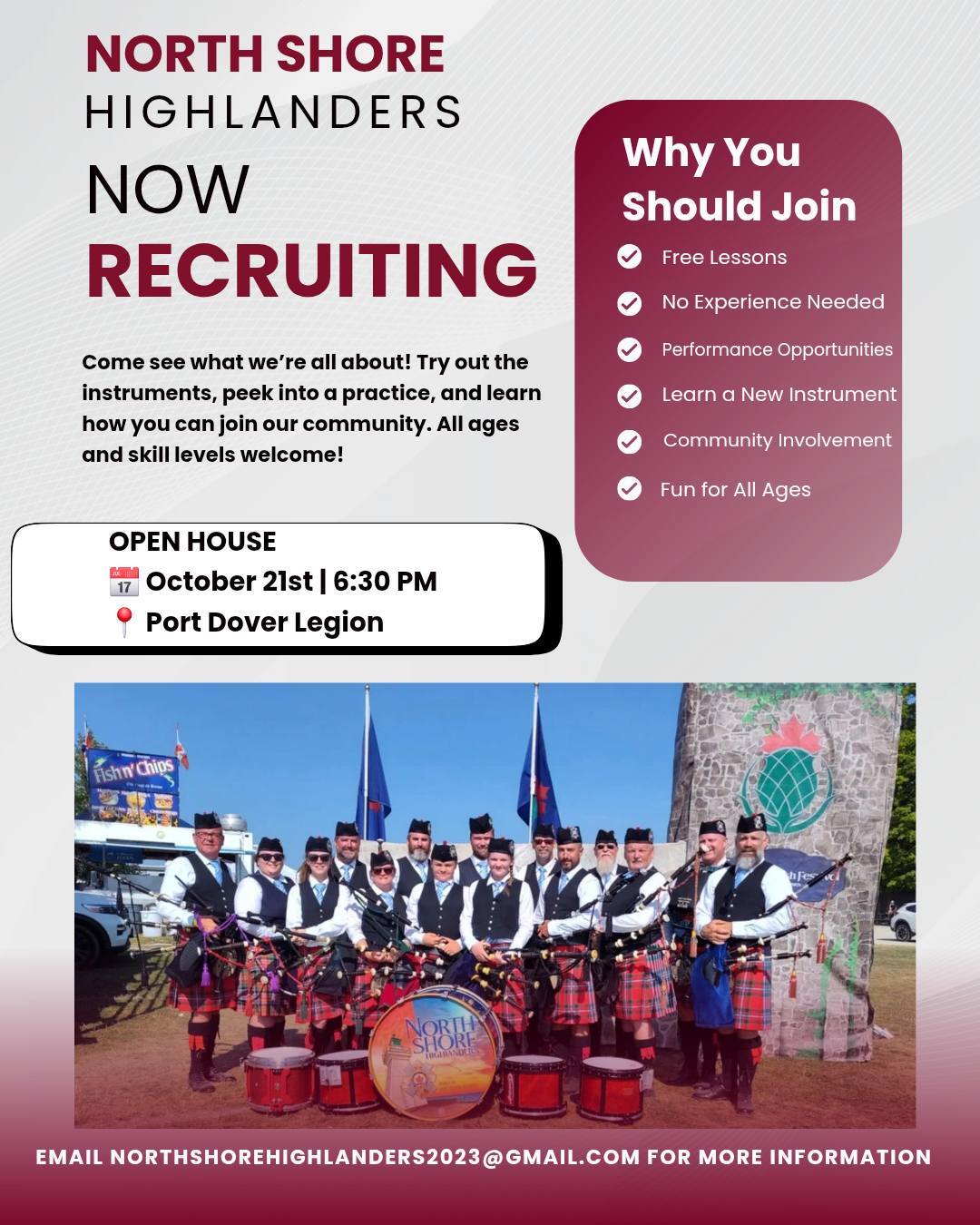 🥁 Open House – North Shore Highlanders | Port Dover Legion | 6:30 PM | More