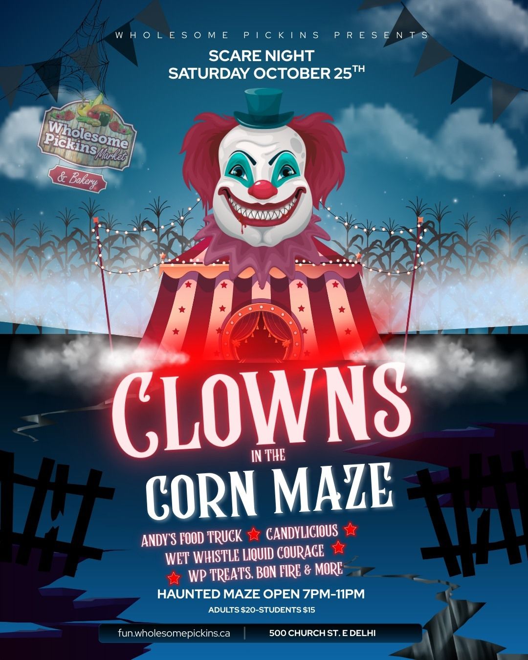 🎃 Scare Night in the Corn Maze | Wholesome Pickins | 7:00 pm – 11:00 pm | Thrills, chills, tricks, and treats | More